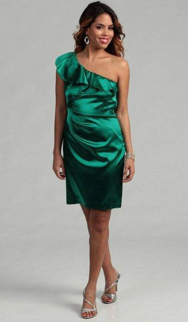 Make an appearance at your party with a stunning flair in this Hailey by Adrianna Papell 231M19610 creation. Gleaming with luxury on a stretch satin fabric, this chic piece shows an asymmetrical neckline with a ruffled panel. Crafted with a slated back, this ensemble shows lovely pintucks along the side while draping down to a short hemline. Express an eloquent sophistication in this Hailey by Adrianna Papell masterpiece. Models are wearing the Ivory and Emerald colors.