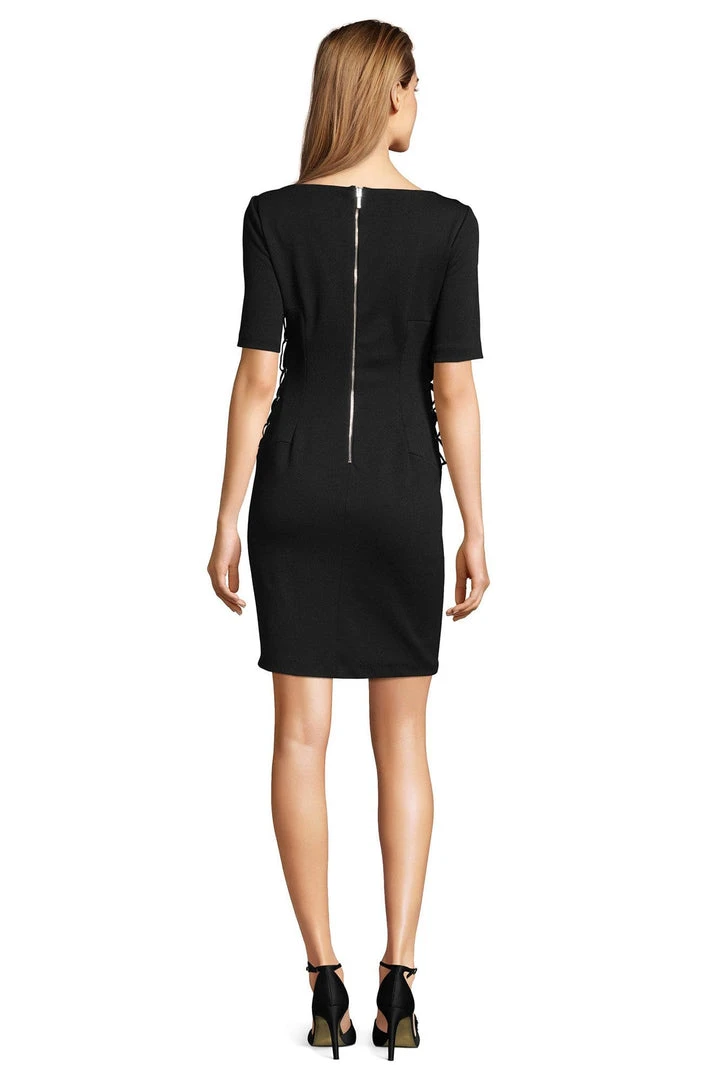 Appear elegant in this beautiful cocktail dress by Adrianna Papell AP1D101827. Contoured with tailoring seams, the fitted bodice showcases a bateau neckline and short sleeves with lace up details along the sides. The skirt boasts a sheath silhouette that cascades above the knee hemline as the full back is enclosed with a center zipper closure detail. Be dressed up gorgeously in this Adrianna Papell ensemble.
