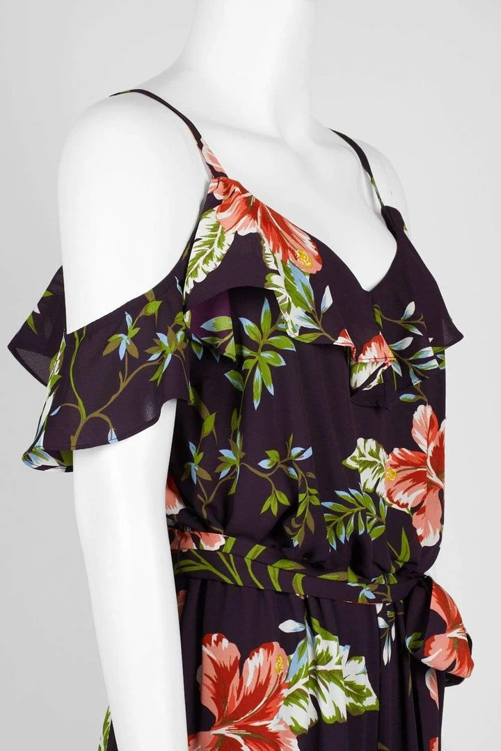 Show off your trendsetting style when you wear this look by Adrianna Papell AP1D103372. This floral print look delights in a V-neckline with spaghetti straps and off-shoulder straps. The bodice is styled with a ties waist and features a pair of long loose leg pants. Dress to impress with this Adrianna Papell style.