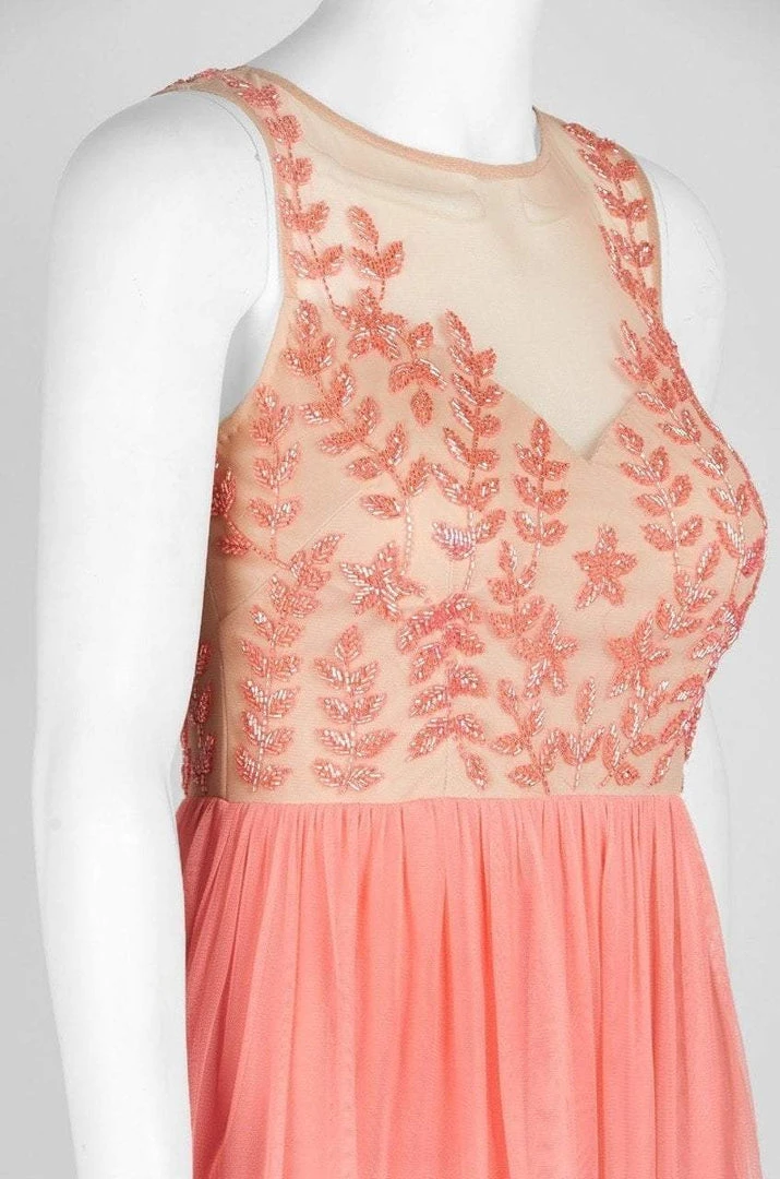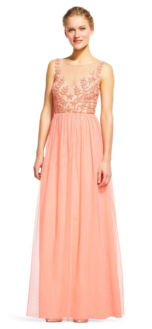 Portray the rich variety in design of this dress by Adrianna Papell AP1E200878. This sleeveless dress features an illusion bateau neckline with sweetheart lined bodice adorned with patterned bead embroidery. The back shows a V-cut and a zipper closure. From the natural waist begins a full length A-line skirt. This Adrianna Papell creation is simply captivating!