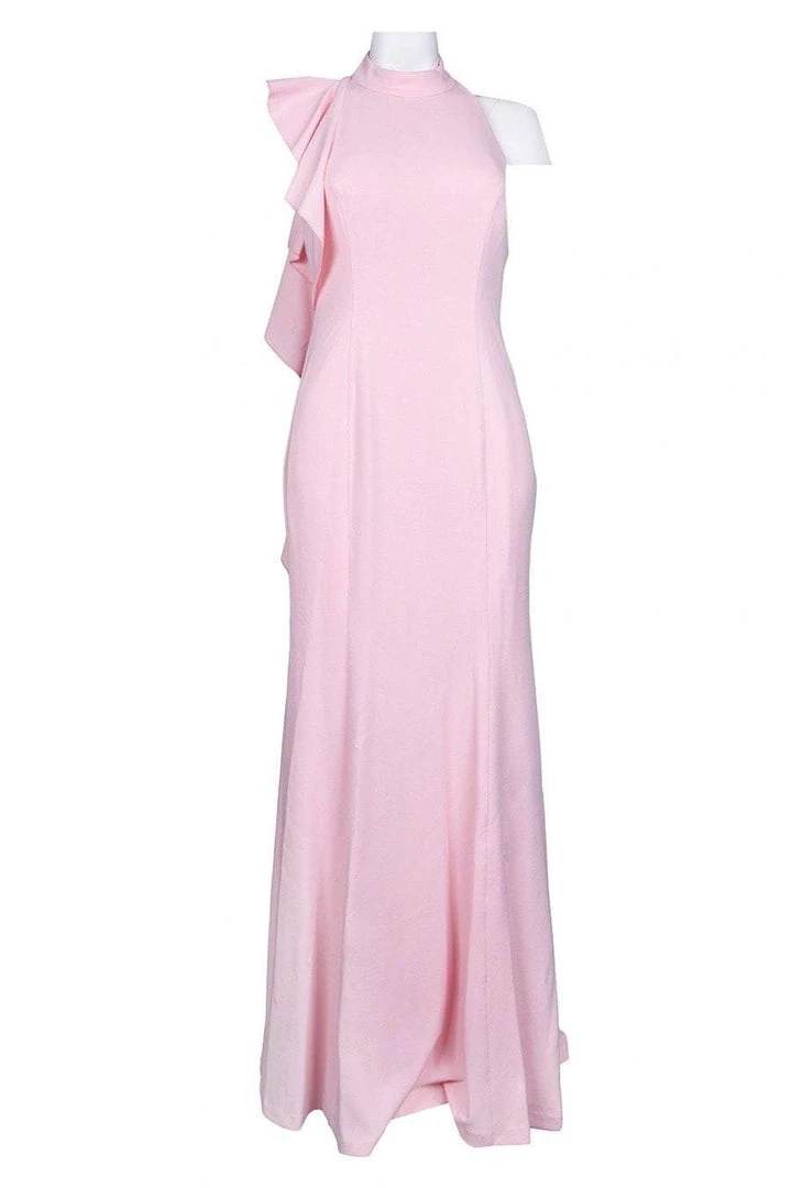 Make a statement with this look from Adrianna Papell AP1E203268. Presents in a sleeveless, high neckline with fitted bodice showing off a mid-open back and a zipper closure. From the neck begins a long trail of ruffle detail down the trumpet skirt. Get glamorous look with this dress by Adrianna Papell.
