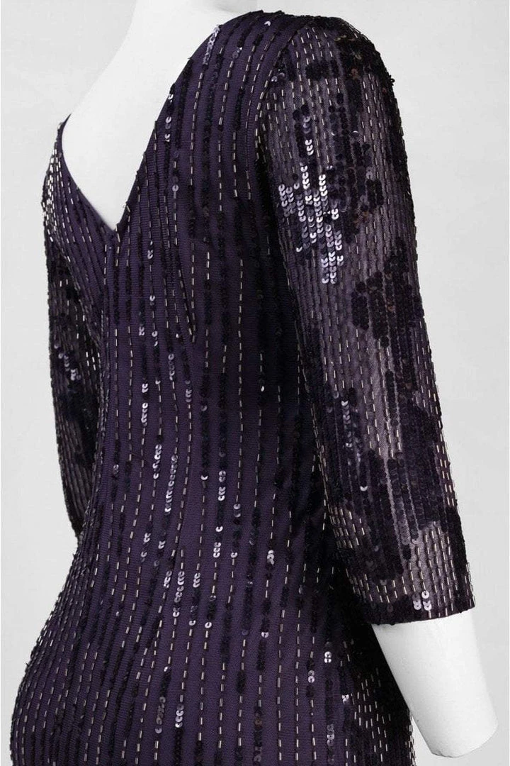 Sparkle from all angles in this breathtakingly sequined Adrianna Papell 41901082 creation. Gorgeously sequined and beaded from top to bottom, this stunning piece shows a bateau neckline, quarter sleeves and a v-cut back. Flowing with shimmering embellishments, the sheath skirt skims gracefully down to a short hem. Be that star everybody is pining for in this spectacular Adrianna Papell masterpiece. Model is wearing the Prune color.