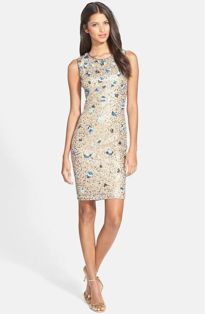 Surround yourself with sparkle of glamour when you walk in this dazzling dress from Hailey by Adrianna Papell 231M56940. This dress features a sleeveless, jewel neckline. The multi-sequin embellishments on the front adds texture and charm on the dress. This Hailey by Adrianna Papell creation is a brilliant look for anyone who wants to stand out at the party.