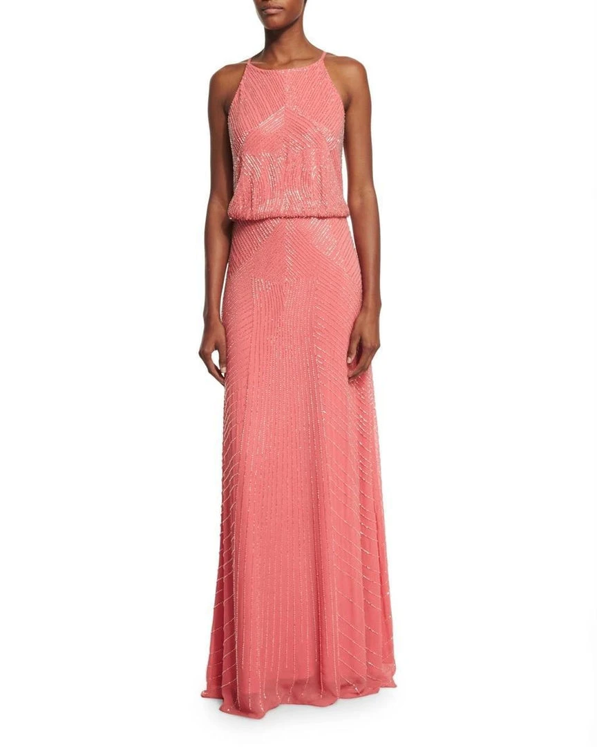 Dress yourself in creative couture with this dazzling Aidan Mattox 054470000. This dress features a halter neckline with a racer back. It is made of beaded mesh fabric that looks fantastic. Make a splash in this dress from Aidan Mattox.