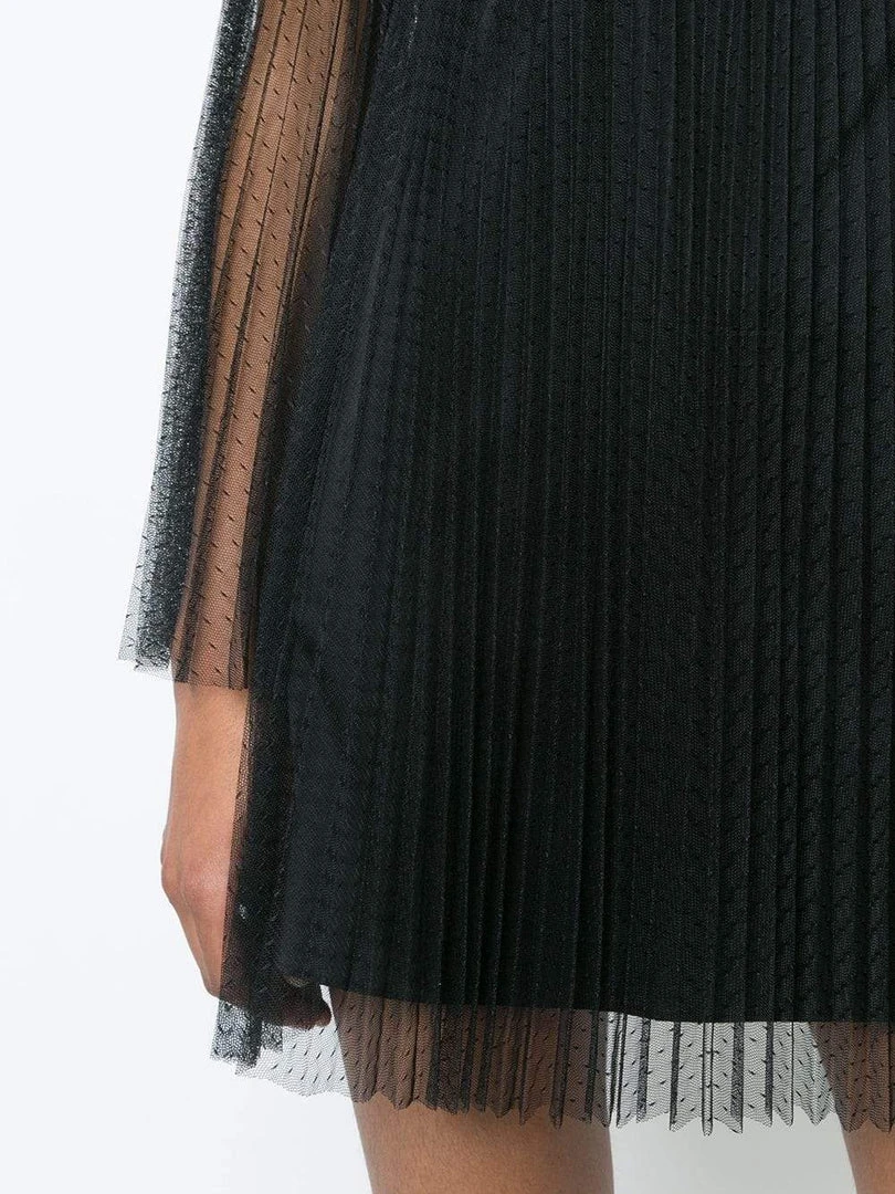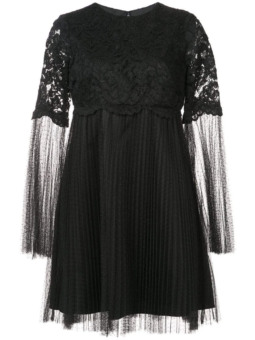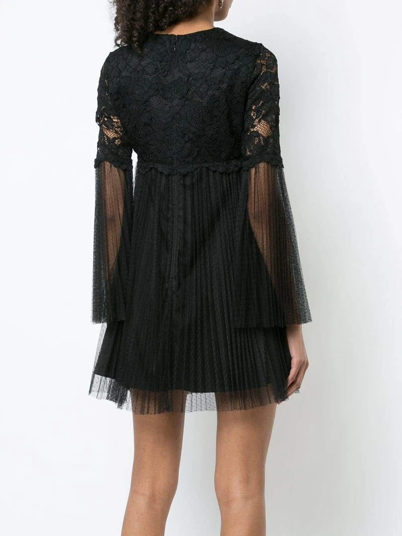 | Details: | Floral lace, Sheer long sleeves, Pleated A-line skirt, Back zipper, Mesh |