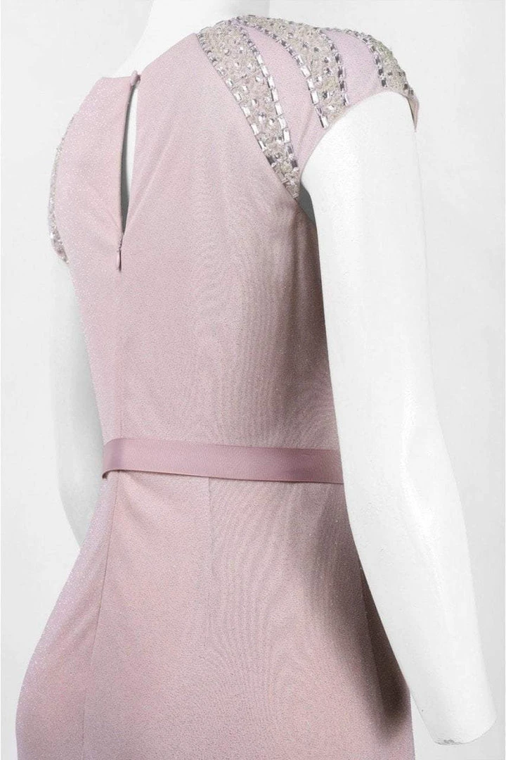 Walk into a room and captivate the crowd with your enthralling feminine flair in this dainty Alex Evenings 133055 creation. Beautifully festooned with sparkling crystals lining its delicate cap sleeves, this charming piece features a jewel neckline lined with gathered pleating and an alluring keyhole cutout on a soft jersey mesh bodice. Charmingly cinched at the waist with a satin ribbon tied with an off-center bow, a lovely cascade of pleats flourishes this slender sheath skirt completes at a spectacular full length hem. Gracefully fascinate everyone with your lavish style in this Alex Evenings masterpiece.