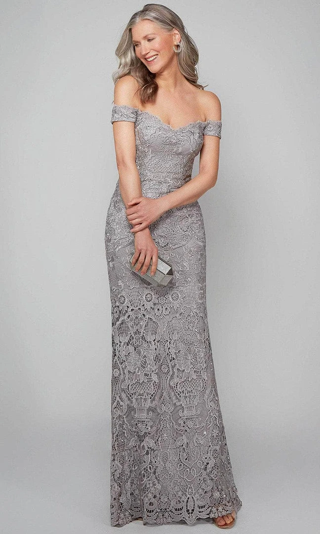 Flourish a chic style that will mesmerize the opulent crowd in this gorgeous Alyce Paris 27553 creation. Gorgeously tailored on a stretch lace fabric with intricately embroidered patterns. which will perfectly match your special occasion. Featuring an off the shoulder, sweetheart neckline, designed to show off your shoulders and collarbones, a fitted bodice and full lining for your comfort. The skirt hugs your body figure with its fitted silhouette, as it modestly finishes to a full length laced hem. This Alyce Paris masterpiece is perfect for a girl who wants the standout style and flawless fit. Model is wearing Silver color.