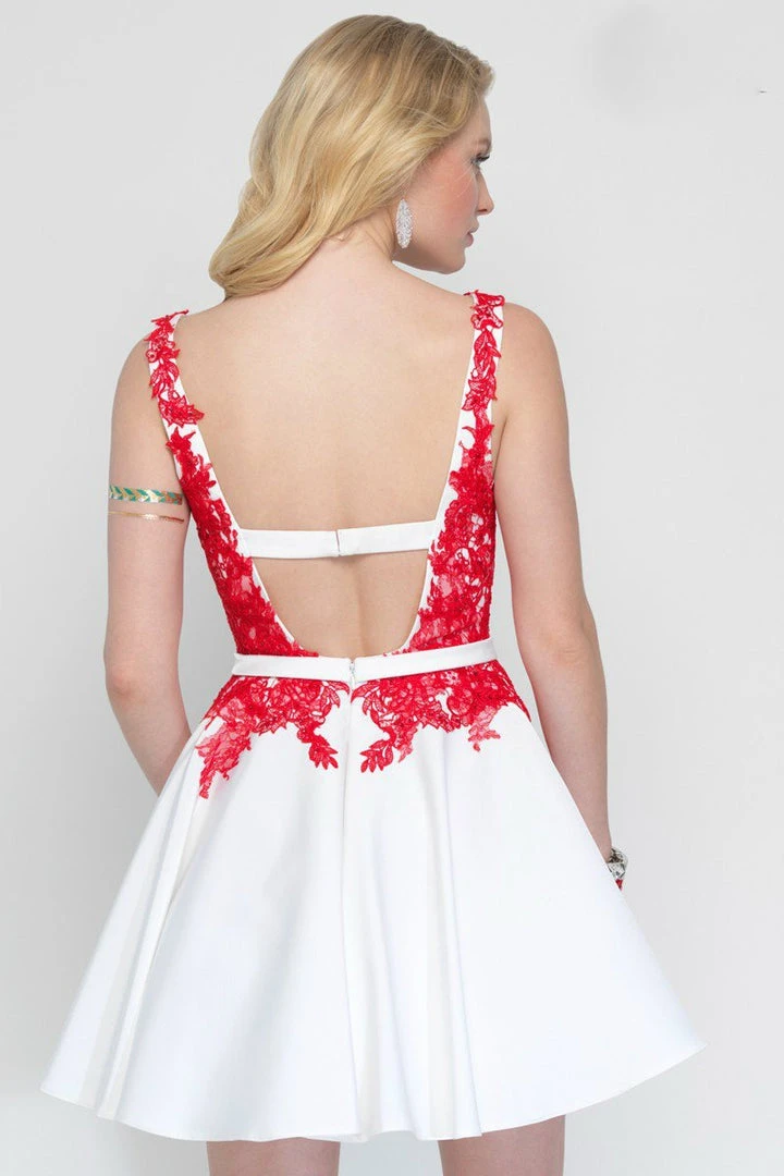 Make it your moment to stand out wearing this fantastic Alyce Paris 3689 cocktail dress. This sleeveless attractive ensemble showcases a square neckline. The bodice is beautifully adorned with lace embellishments. The natural waist is accentuated with a slim bow waistband. The double straps at the back will definitely flaunt your sexy figure. The A-line skirt flows to an A-line silhouette ending at a mid-thigh length hem. You are undeniably an attention-grabber with this captivating Alyce Paris design.