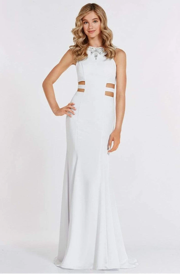 Walk in and stun the crowd in this beautiful Alyce Paris gown. This style 8009 features a beautiful embellished halter top, followed by fun and flirty side cut outs and an elegant train that will glide with you as you walk. This stretch trumpet style gown will hug your natural figure and have all eyes on you.