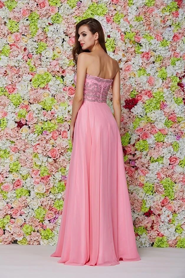 Intricate beading frames the sweetheart-neckline bodice of this luminous dress before the tulle cascades into a floor-sweeping skirt. This dress from our Angela & Alison Spring 2016 Collection comes in Red, Emerald and Pink.