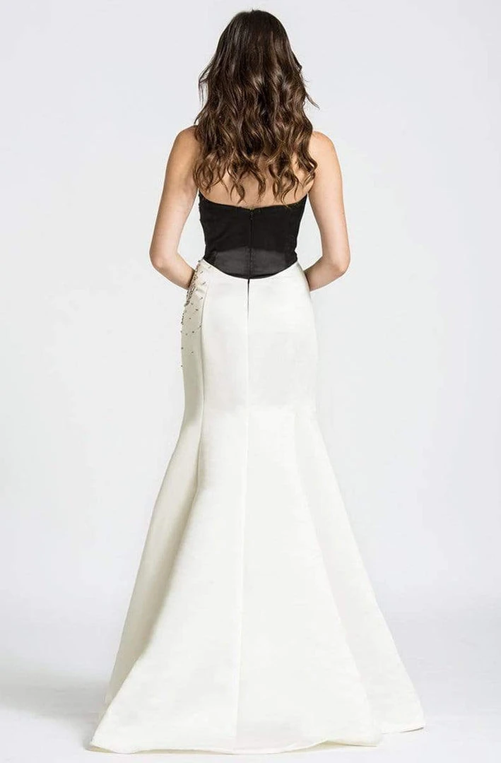 | Details: | Strapless, Beaded rosette detailing, Contrasting skirt, Mermaid skirt, Sweep train, Back zipper |