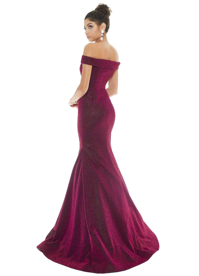 Look lovely in this timeless dress by Ashley Lauren 1606. Made of metallic scuba fabric, this long gown shows off in an off the shoulder neckline with fitted bodice styled with a zipper closure. The skirt forms a defined mermaid silhouette and finishes in a sweep train. Dazzle in this evening dress by Ashley Lauren.
