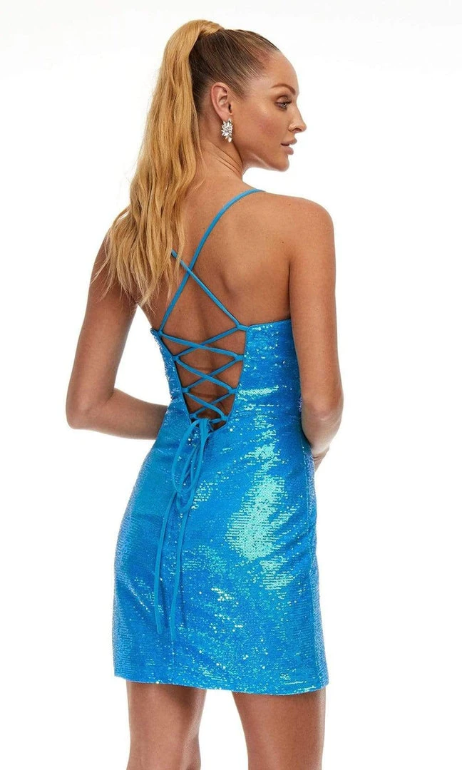 Get ready for everyone to stop and stare when you show up in this Ashley Lauren 4446 cocktail dress. This dress highlights a scoop neckline supported by spaghetti straps in a fitted and sequin bodice with princess seams. The skirt reveals a sheath silhouette while the back shows a cross back with lace up back closure. Be fabulous in this Ashley Lauren design.