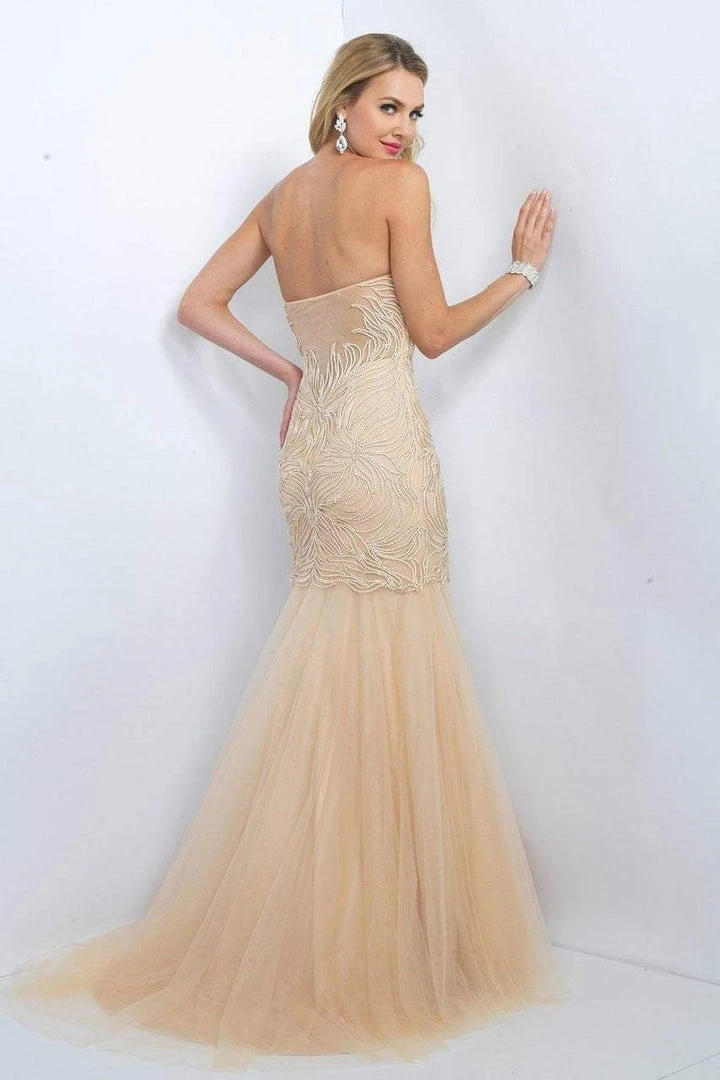 This Blush 7003 is the perfect choice for the girl who wants to look gorgeous without being suggestive. This sassy mermaid silhouette features a strapless sweetheart neckline and a fully beaded bodice. The skirt flares at the knee in voluminous layers of tulle finished with a fish line hem. This Blush creation is perfect to stand out in the crowd.