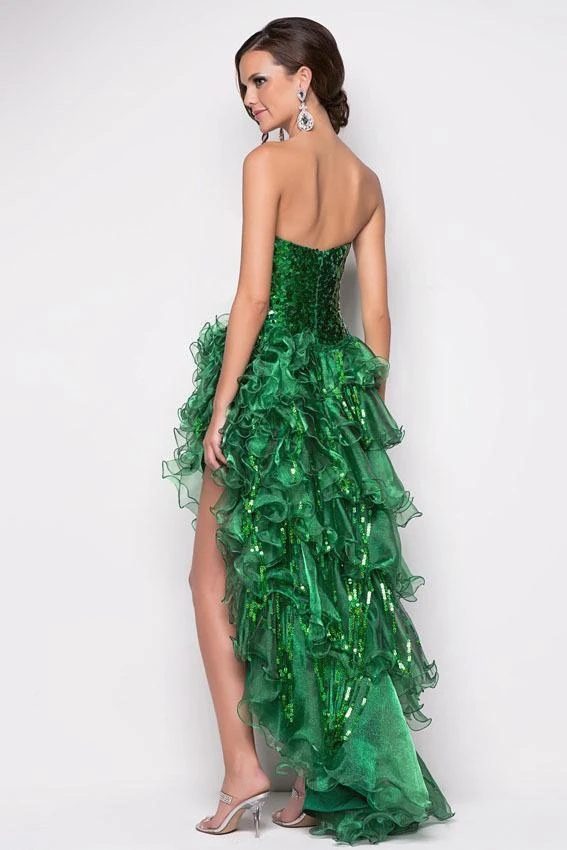 | Details: | Embellished Neckline, Sequined Bodice, Ruffled Skirt, Mid Open Back, Back Zipper |
