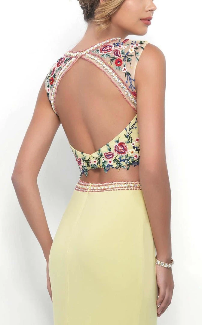Light up the room every single time you walk in in this floral embroidered masterpiece by Blush 11283. The fitted bodice features a jewel illusion over a sweetheart neckline, cap sleeves and a diamond cutout open back. Embellished with floral accents on the shoulders and crystal-lined seam line embellishments, a brilliant display of floral embroidery adorns and trims its cropped top. The sleek skirt, crowned with an embellished waist and draping, reveals a side slit accent as it pools on a sweep of train. Exude a lavish yet feminine appeal with this Blush creation.