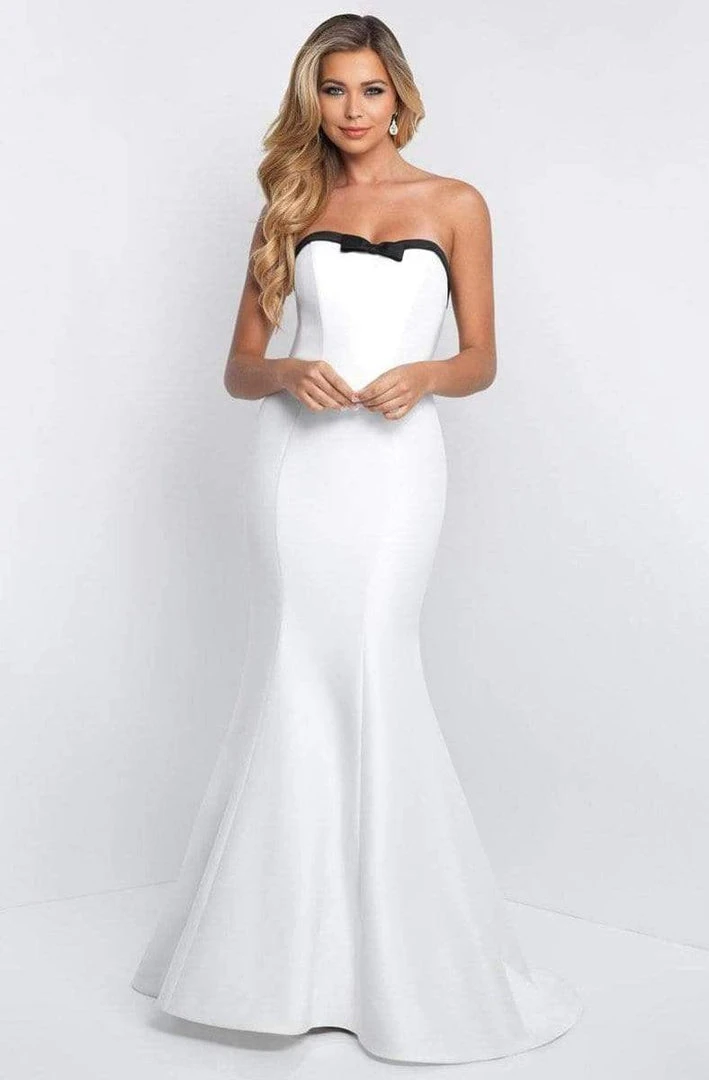 Look every bit like a Parisian beauty as you radiate charm in this dazzling Blush C1046 creation. Impeccably sculpted with seams on a soft Mikado fabric, this fascinating piece reveals a strapless modified sweetheart neckline accented with a contrasting band and bow accent. The mermaid skirt forms a flaring flute before creating an amazing finish from knees to a full-length silhouette. Glamorously flourishing contrasting ribbon accents trailing from the mid-open back down to a sweeping train that pools impeccably down to a sweeping train. Shine like the glamorous siren that you are at your upcoming party in this Blush masterpiece.