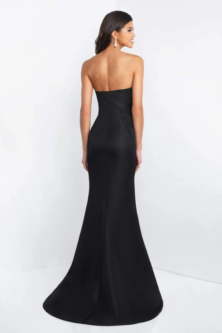 Make a memorable splash at your upscale evening in this lux formal dress by Blush C1038. This strapless dress has a distinct sweetheart neckline with asymmetric lines and contrasting floral prints accented at the full length sheath skirt with sweep train and slit. Enhance your visual appeal in this luxurious Blush piece.