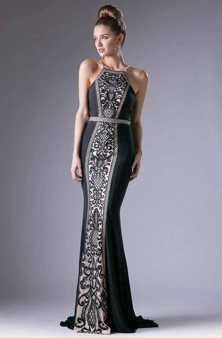 Strike a pose as you enter the room in this exquisite Cinderella Divine 83821. This long dress features halter neckline on a fitted bodice embellished in a patterned detailing. It parades a long sheath silhouette and keyhole back style. Clothe yourself in an alluring perfection that would capture a fairy tale you are dreaming of in this Cinderella Divine creation.