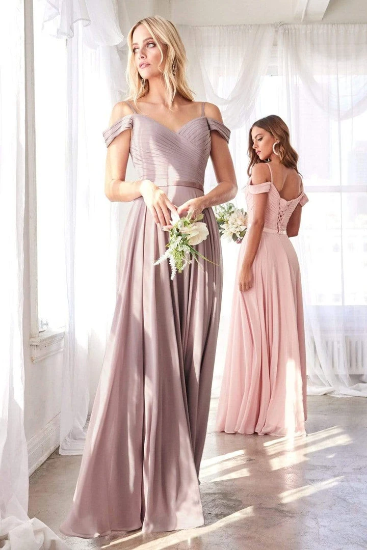 Be the delight of the crowd when you show up in this Cinderella Divine CD0156 creation. Exceptionally embellished with intricate pleats wrapping the bodice, this dress flourishes a v-notch mingling with an off shoulder neckline. Spaghetti straps support the bodice and its corset scoop back style. A satin band wraps the waist. The chiffon skirt flutters down to a full-length hemline. Lavish in the sophistication bestowed by this Cinderella Divine masterpiece.