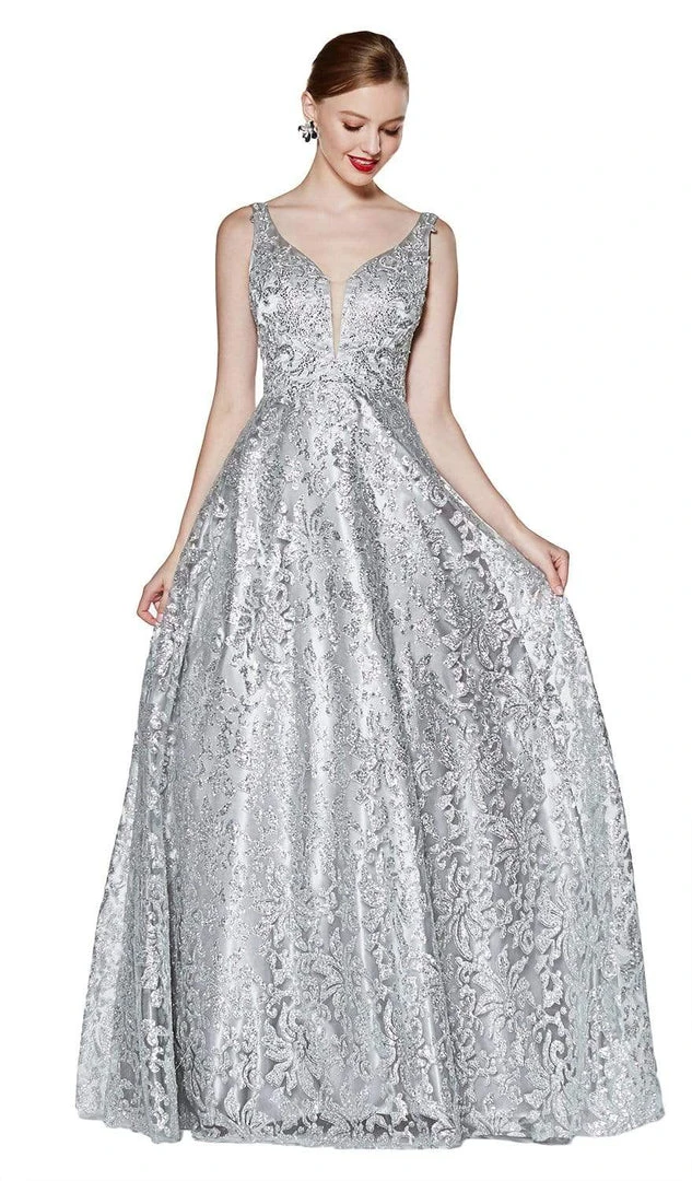 Be dressed up gorgeously in this stunning Cinderella Divine ML929 masterpiece. A plunging V neckline with sheer inset detail at the bust bisects the sleeveless bodice as the back flaunts an open V cut. The whole dress is designed glitter floral print as the a-line skirt adorns soft pleats that tapers to the full length hemline. This Cinderella Divine gown will make sure you turn heads all night long.