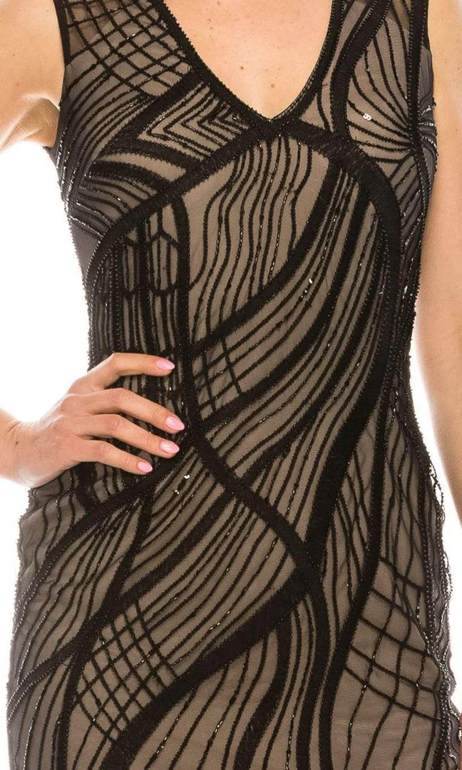 Be fabulous and get ready for everyone to stop and stare when you show up in this Aidan Mattox MD2E200937 dress. This dress showcases a V-neckline in a sleeveless, fitted and embellished bodice. Revealing a sheath silhouette, this also fashions a back keyhole with back zipper closure. Step out in style wearing this stunning Aidan Mattox creation. Model is wearing Black Light Mink color.