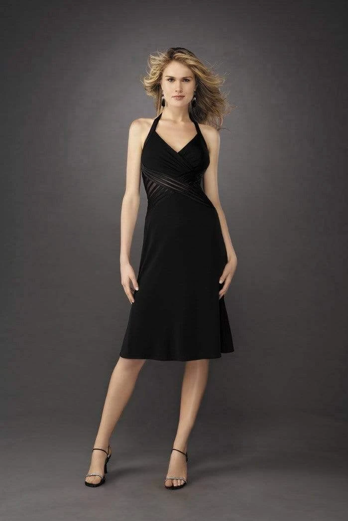 Flatter your figure with this eccentric design by La Femme 12722. This dress shows a surplice halter bodice with a partly sheer crisscross waistband. Accented with a mid-open back with a stripe rendering, the knee length A-line skirt reveals a soft flare. Look truly amazing and confidently beautiful in this La Femme masterpiece.
