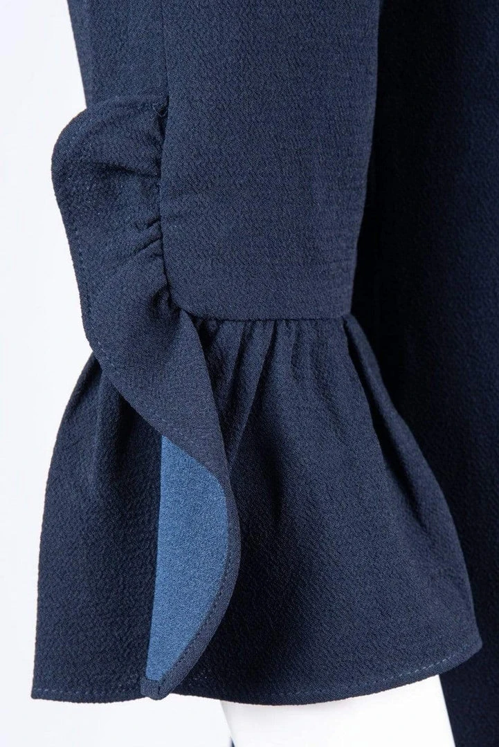 | Details: | Fabric: Crepe (100% Polyester) Lining (100% Polyester), Three-quarter ruffle sleeves, Hidden Back Zipper, Fully Lined |