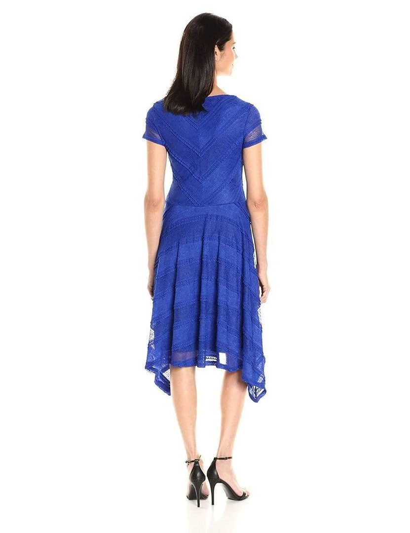 | Details: | Stretch Mesh (95% Polyester 5% Spandex) Lining (100% Polyester), Lace details, Short sleeves, A-line skirt, Pleated, Back zip closure |