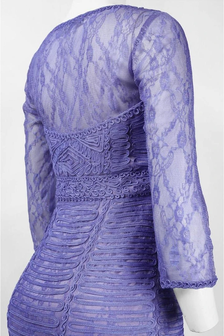 | Details: | Mesh (100% Nylon) Lining (100% Polyester), Illusion details, Quarter length sleeves, Column skirt, Lace bodice |