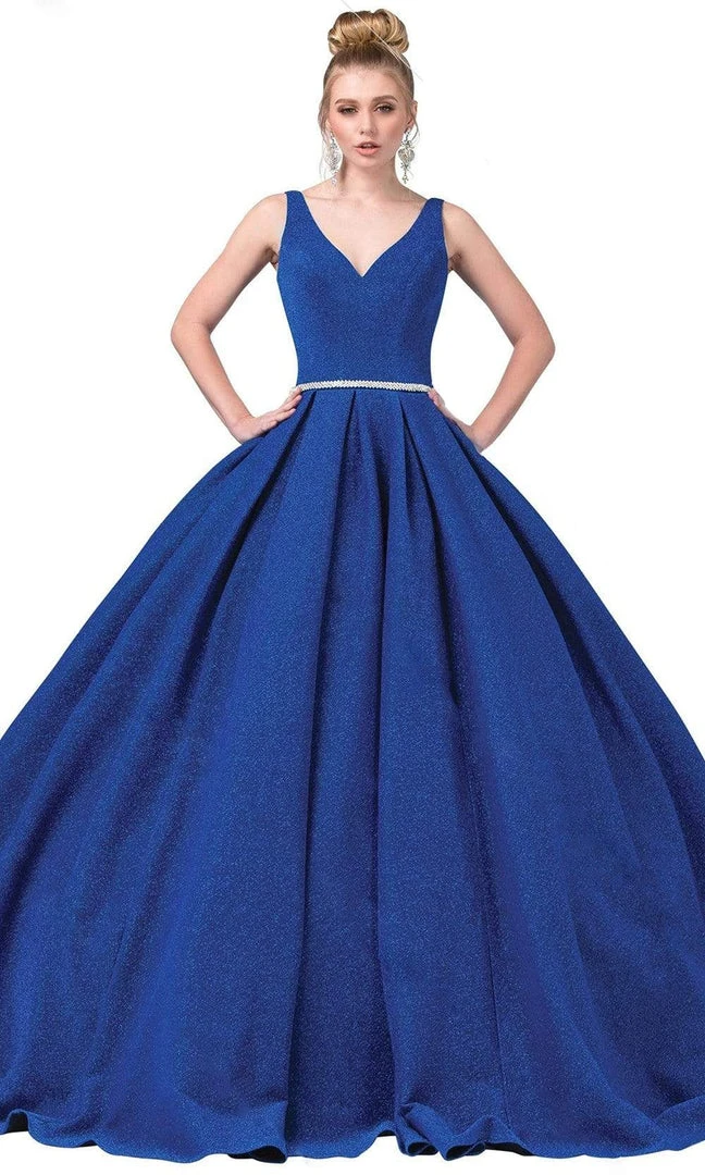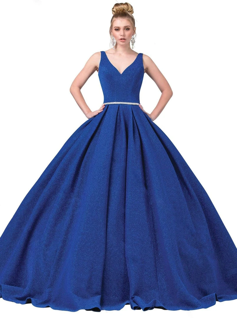 Secure your sights at the top of the best-dressed list in this Dancing Queen 1356 creation. Lushly contoured into a sleeveless bodice, this stunner shows a deep v-neckline and a square corset back. Embraced with a bejeweled waistband, the ballgown skirt shows a voluminous silhouette as it touches the floor with a train. Look and feel like a stellar vision in this Dancing Queen masterpiece.