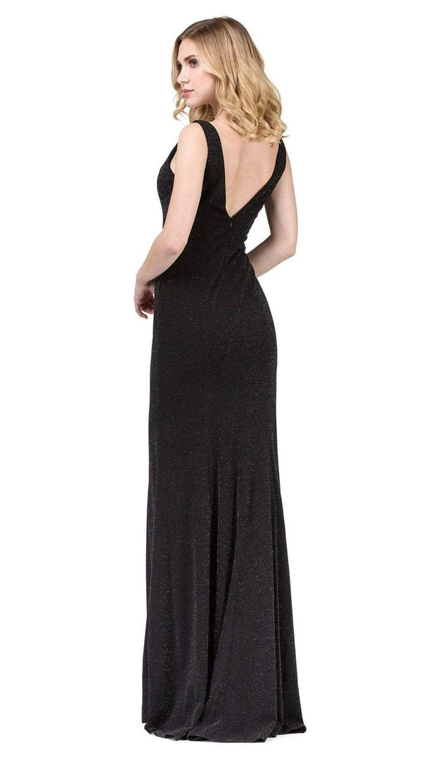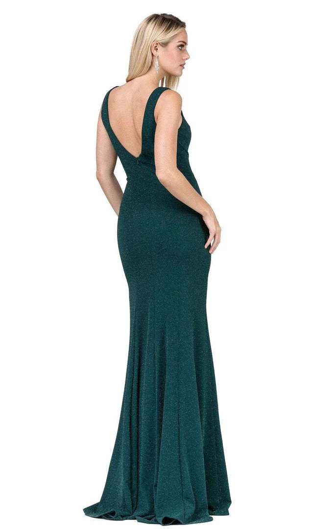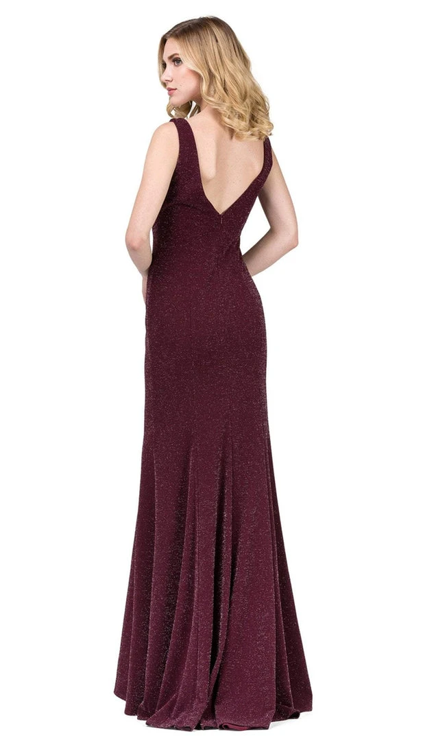 Glitter for the special occasion in this prom dress from Dancing Queen 2497. This simple yet chic design made of shimmer fabric shows off a sleeveless, plunging V-neckline. The fitted bodice is styled with a low V-back and a zipper closure. From the waist begins a floor-length fitted skirt with a sweep train finish. Standout among the fabulous crowd as all eyes focus on you in this glamorous Dancing Queen creation.