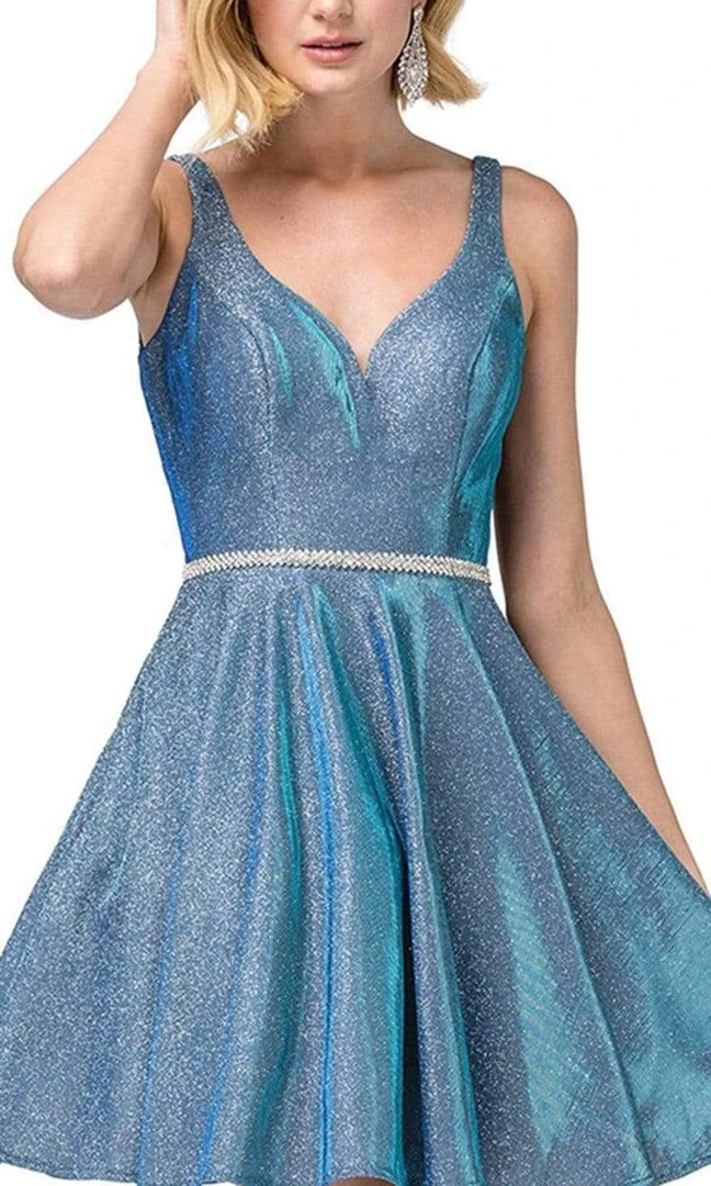 Capture the glamour as you appear in this charming Dancing Queen 3142 cocktail dress. Contoured with princess seams, the fitted bodice features a slightly curved V neckline, mirrored with a V back. The natural waist is accented with a thin belt as it gives way to the pleated a-line skirt that falls above the knees. Simple yet elegant, this Dancing Queen cocktail dress is perfect for ladies who want to be sophisticated without being suggestive.