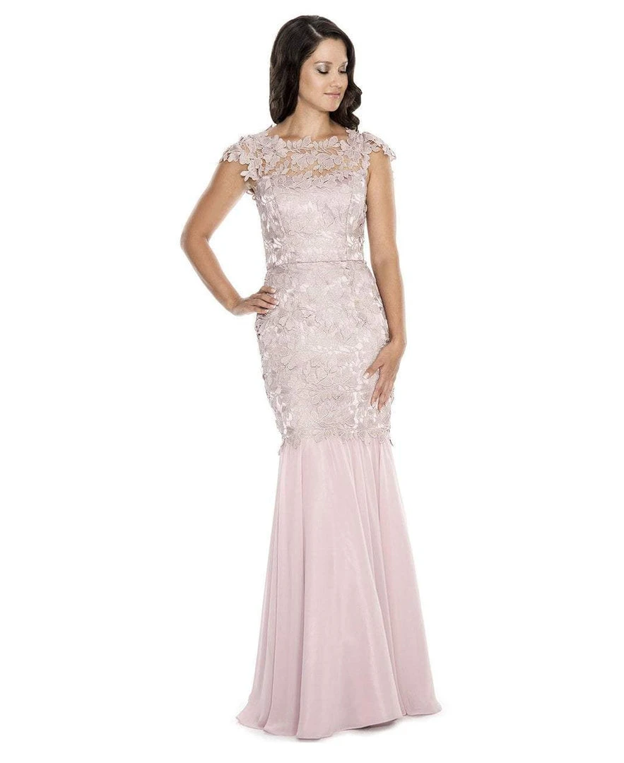 Dream big in this chic evening gown from Decode 1.8 183974. The glamorous bodice is layered with floral lace creating a romantic effect. Features a chic cutout accents the back. The dress slides to the full-length mermaid silhouette hem, complete with a fantastic fluttering chiffon fabric. Make that magical moment happen in this gown Decode 1.8!