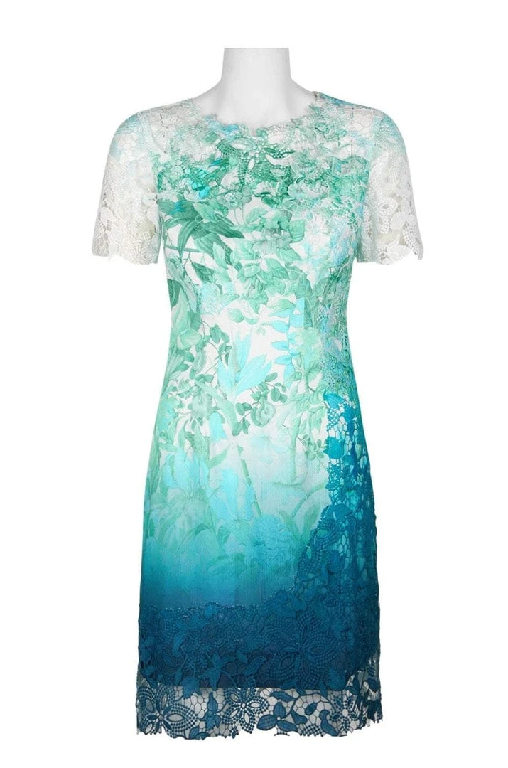 | Details: | Short sleeves, Back zipper, Floral lace, Fitted bodice, Sheath skirt |