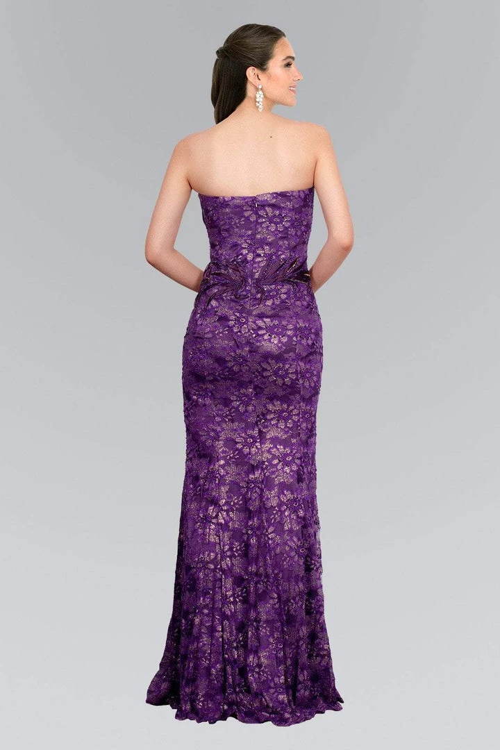 Look amazing for your next formal event in this evening gown by Elizabeth K GL1006. Sumptuous lace works throughout the classy strapless sweetheart bodice of this gorgeous dress. A tailored fit accentuates a feminine silhouette along bust, waist and hips while the semi-flared skirt flows to full-length. Stunning and statuesque, this luxurious creation for evening by Elizabeth K matches your elegant style! Model is wearing the Eggplant and Teal colors.
