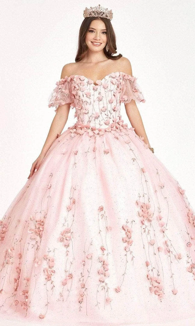 Rise above the rest in this classy as you make a grand in this inspired Elizabeth K GL1975 creation. Sprinkled with floral appliques, beadwork and glitter accents, this piece features a sweetheart neckline framed with sheer off shoulder straps. Accented with a corset styled back, the voluminous skirt dazzles as it traverse to the floor into a full length ballgown silhouette. Opt for stunning allure in this gorgeous Elizabeth K masterpiece.
