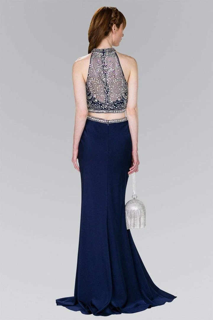 Charm everyone by the sheer perfection of this tantalizing Elizabeth K GL2424 creation as you grace this spectacular night of festivities. Iridescently ornamented with faceted crystals and stones on a sheer bodice, this gorgeous piece shows off a high illusion over a sweetheart neckline that beautifully rhymes with its sheer racerback. Appealingly trimmed with jewels along the edge of its cropped top and high waist, a modest spectacle of the midriff adds that touch of allure to the ensemble. The flaring flute fashions a magnificent finish from knees to full-length hem while the soft cascade of sweeping train trails at the back for an elegant finish. Create magical moments as you revel all night in this sumptuous Elizabeth K masterpiece.