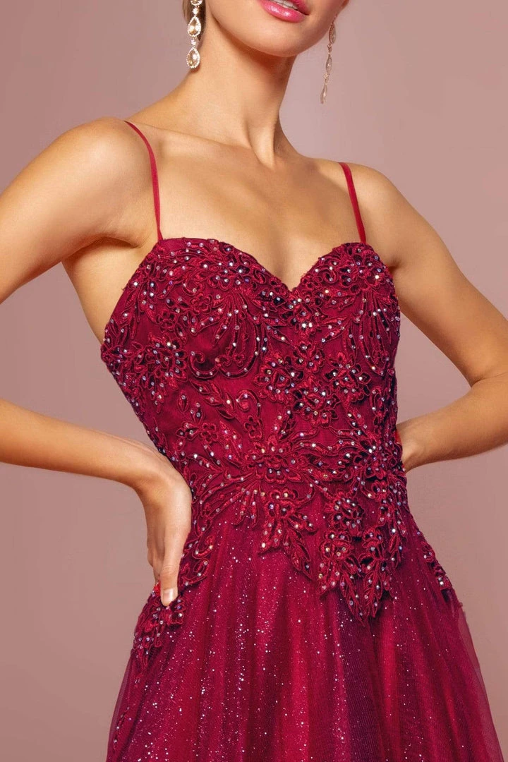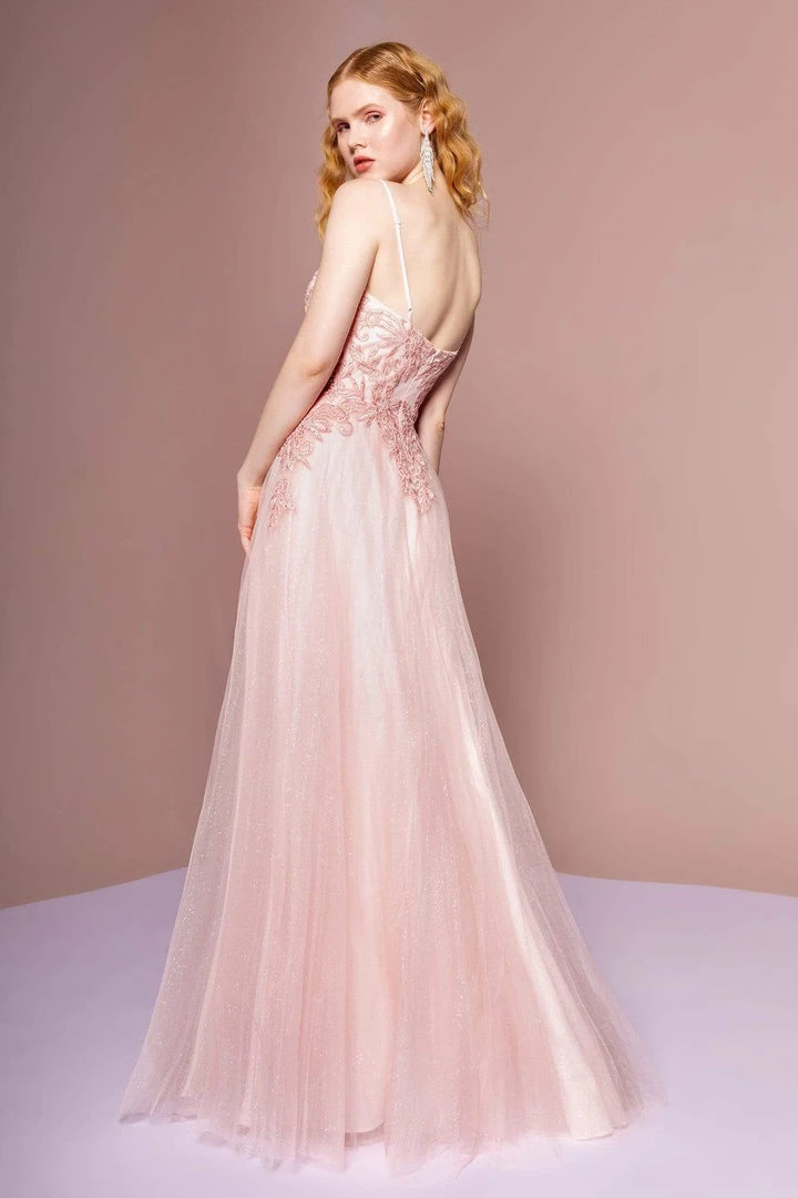 Glow like an ethereal vision at your lavish event in this Elizabeth K GL2694 creation. Fascinatingly designed with an embroidered lace spectacle with shimmering jewels, this chic ensemble shows a sweetheart neckline stringing from spaghetti straps. Designed with an ornate open back, the basque waist streams with jeweled appliques. The glittering skirt cascades fascinatingly into a sweeping denouement. Elevate your status to the top of the best dressed list in this chic Elizabeth K masterpiece.