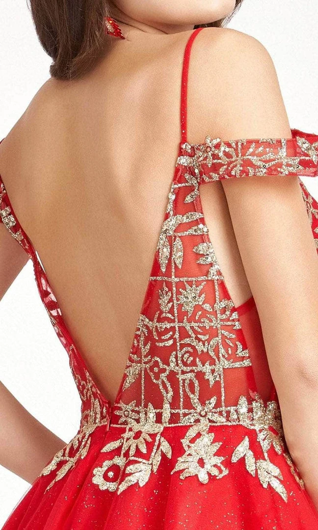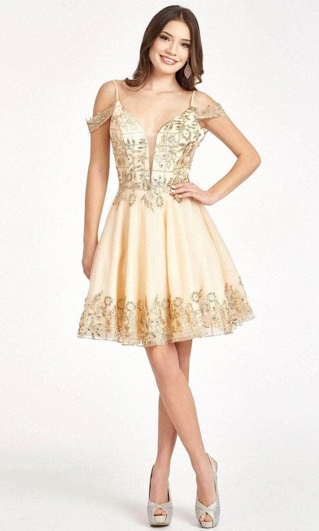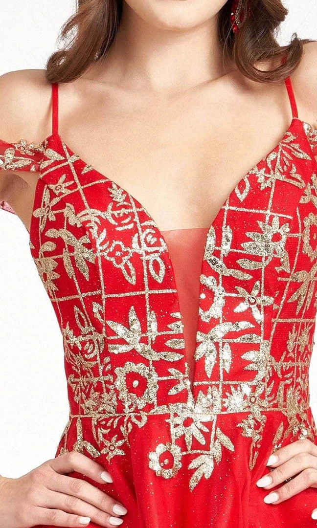 Exude a charm that is meant to mesmerize the elite crowd in this gorgeously decadent Elizabeth K GS1997 creation. Dazzling in sequins and glitters in a floral pattern, this beautiful dress features cold shoulders and a plunging V neckline with sheer inset panel at the bust and sides. The sheer back creates a low V-shape cut enclosed by a zipper closure. The skirt reveals a mid-thigh A-line silhouette. This Elizabeth K style is a sure standout on your next evening social event.