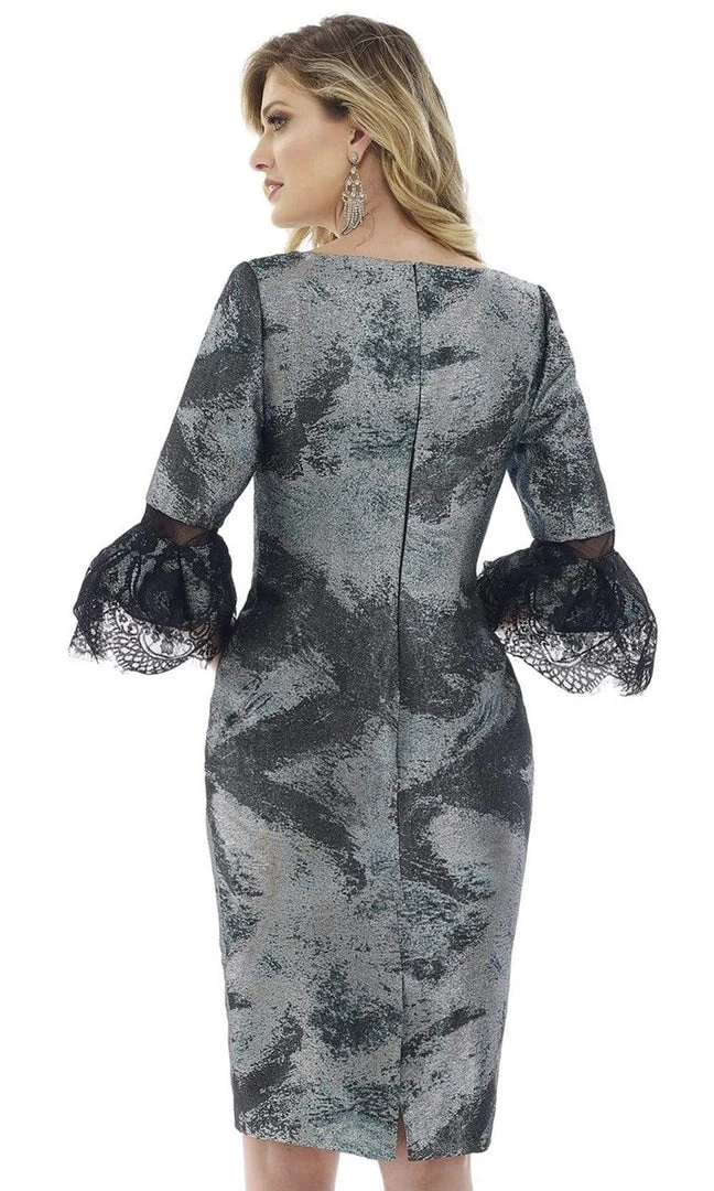 Be destined to dominate everyone’s attention when you don this classy Feriani Couture 20123 creation. Sculpted with a metallic rendered silhouette, this dress features a v-neckline with quarter sleeves and a circular scalloped lace flounce. The full back is accented with a zipper closure. The sheath skirt tapers into a knee length hemline. Unleash that sophisticated siren in in this Feriani Couture masterpiece.
