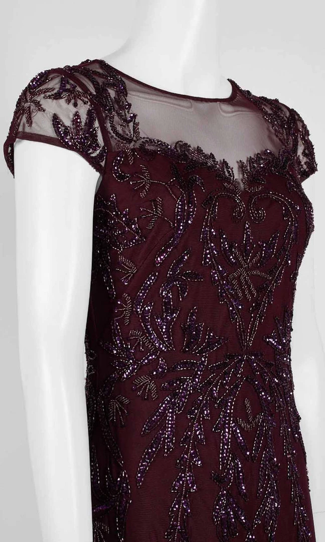 | Details: | Embellished, Sheer yoke, Cap sleeves, Beaded, Fully lined, Slim A-line, Back zipper closure |