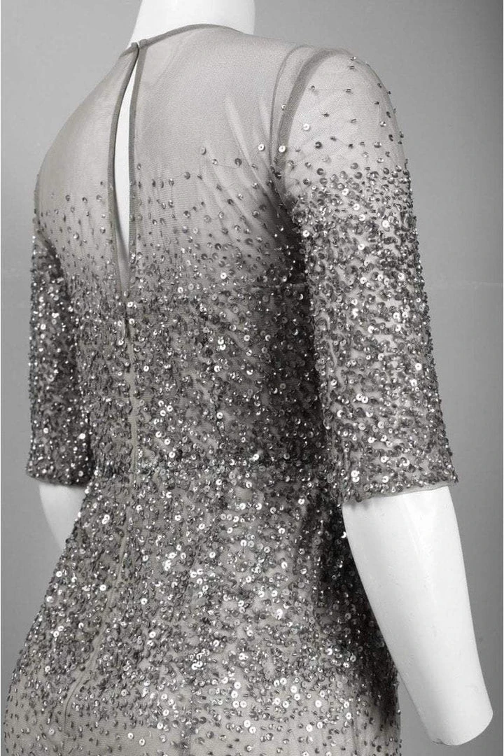 Sequins sparkle on this elegant gown by Adrianna Papell 09186330 making it the perfectly accessorized piece. This mid-length sleeve dress feature A dazzling sequin bodice that make this dress stand out. Paired with a neutral pump, this gown by Adrianna Papell is unbeatable.