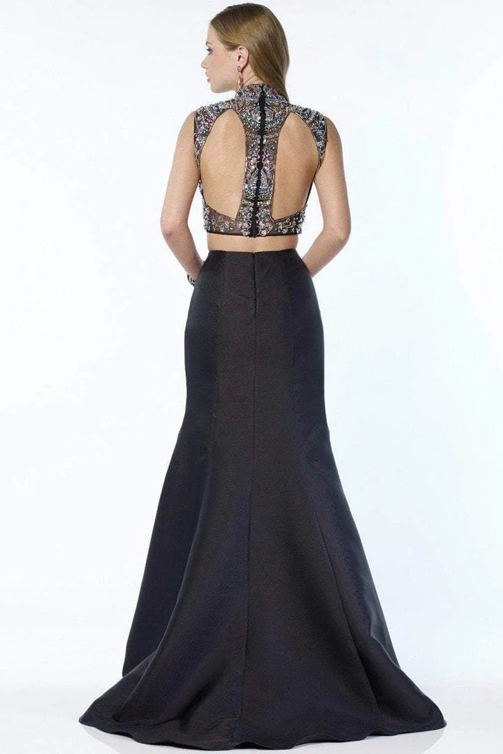Mikado trumpet skirt with a stunning high neck embellished crop top and two keyholes in the back.