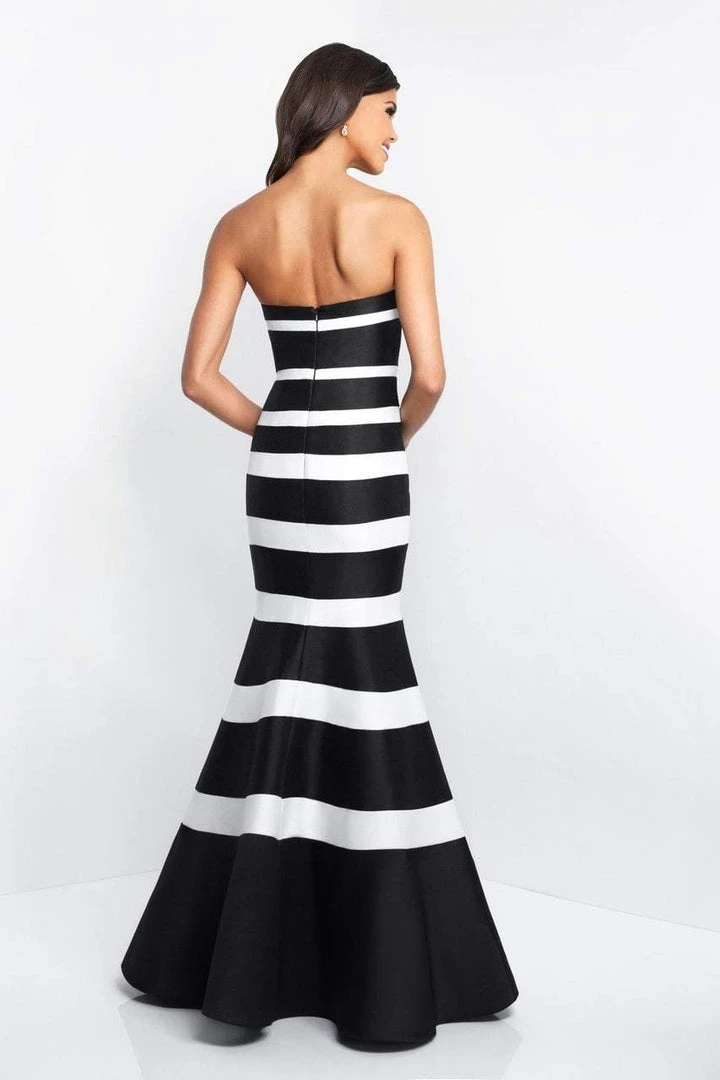 Show your sophisticated sense of style in this dress by Blush C1051. The strapless dress forms a distinct sweetheart neckline with bow accents on the bodice and contrasting panels creating a stripe effect down to the mermaid skirt. The back reveals mid-open and has a zipper closure. Dress yourself in creative couture with this dazzling Blush creation.