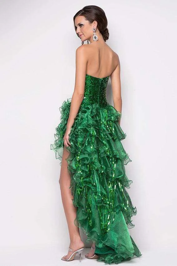 Be in this Blush 9540 formal evening gown with sexy ruffles. Chunky clear stones define your square sequin bodice. Tight layers of curly ruffles create a hot dance gown. Be a woman of style and beauty in this elegant Blush long gown.