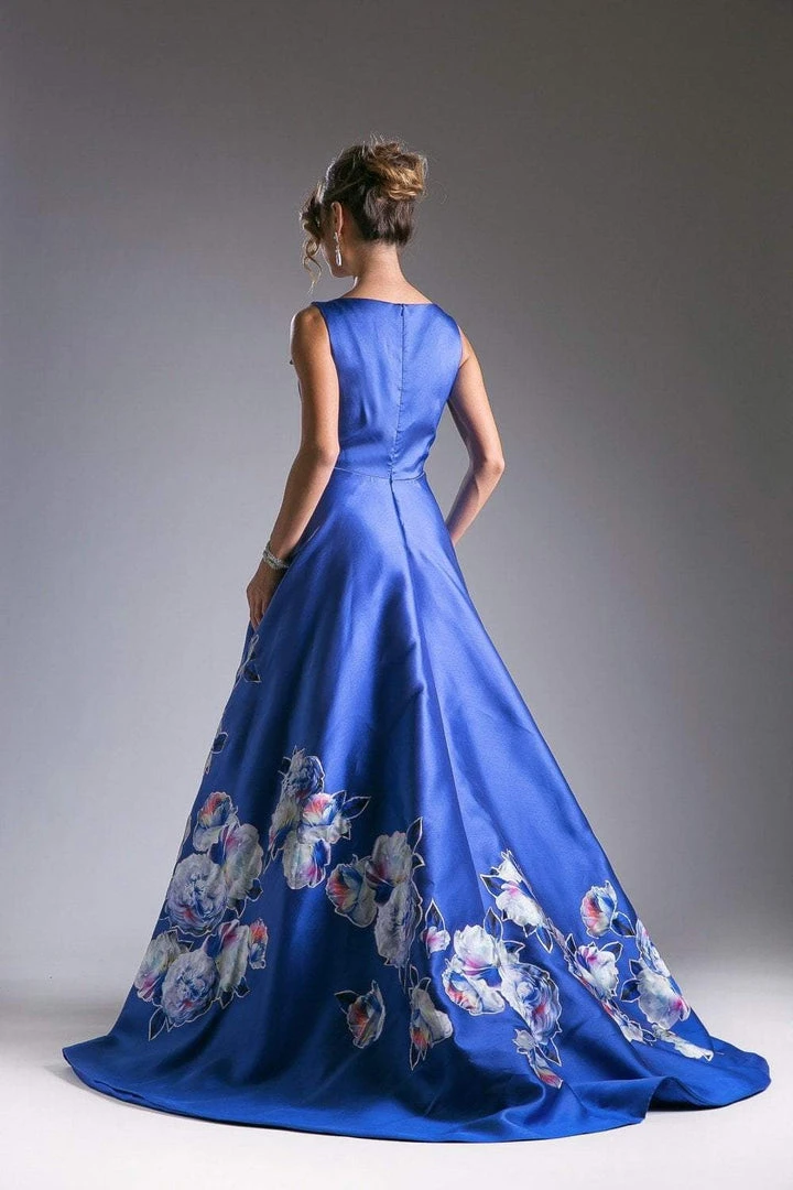 Go for a timeless and sophisticated look wearing this prominent evening gown by Cinderella Divine CA303. This elegant satin gown gets a glam twist with floral print on the ballgown skirt. Features a classy bateau neckline and seam lined sleeveless bodice and natural waistline. Side hand pockets are hidden into the natural folds of the skirt. This creation by Cinderella Divine is designed with sophistication in mind, it is your perfect choice for prom or at a formal evening event. Find more sweet sixteen dresses!