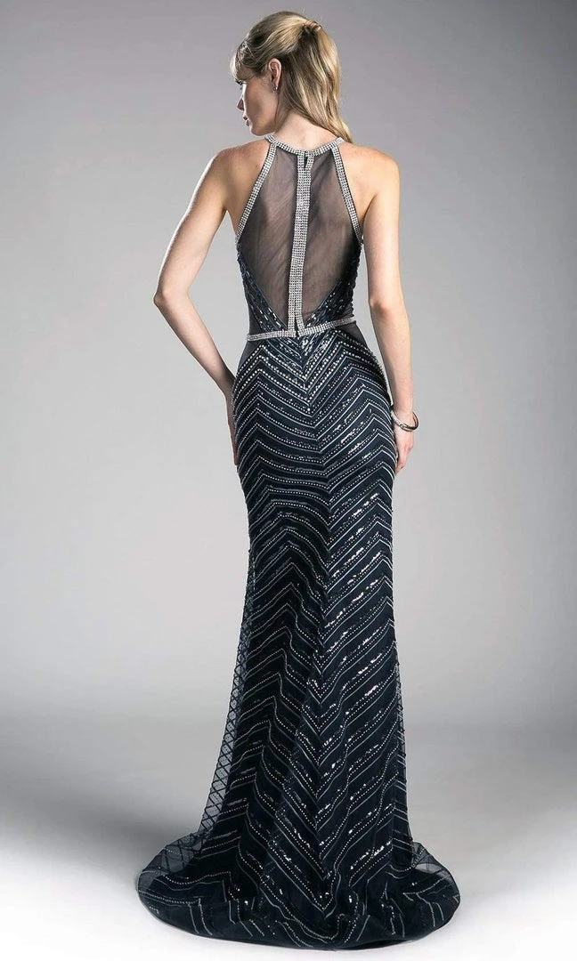 Create a distinction with a regal flair in this exquisite Cinderella Divine CZ0010 creation. Stunningly beaded on a luxurious overlaying fabric with a spectacle of beaded chevron details, this chic ensemble show a halter neckline. Defined with a cut-in sleeved silhouette paired with a semi-racerback, the mermaid skit glistens as it fits and flares down to a gossamer sweep of train. Be the very definition of elegance in this inspired Cinderella Divine masterpiece.