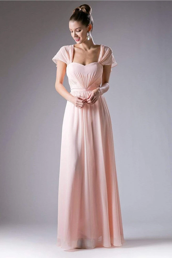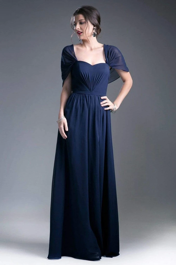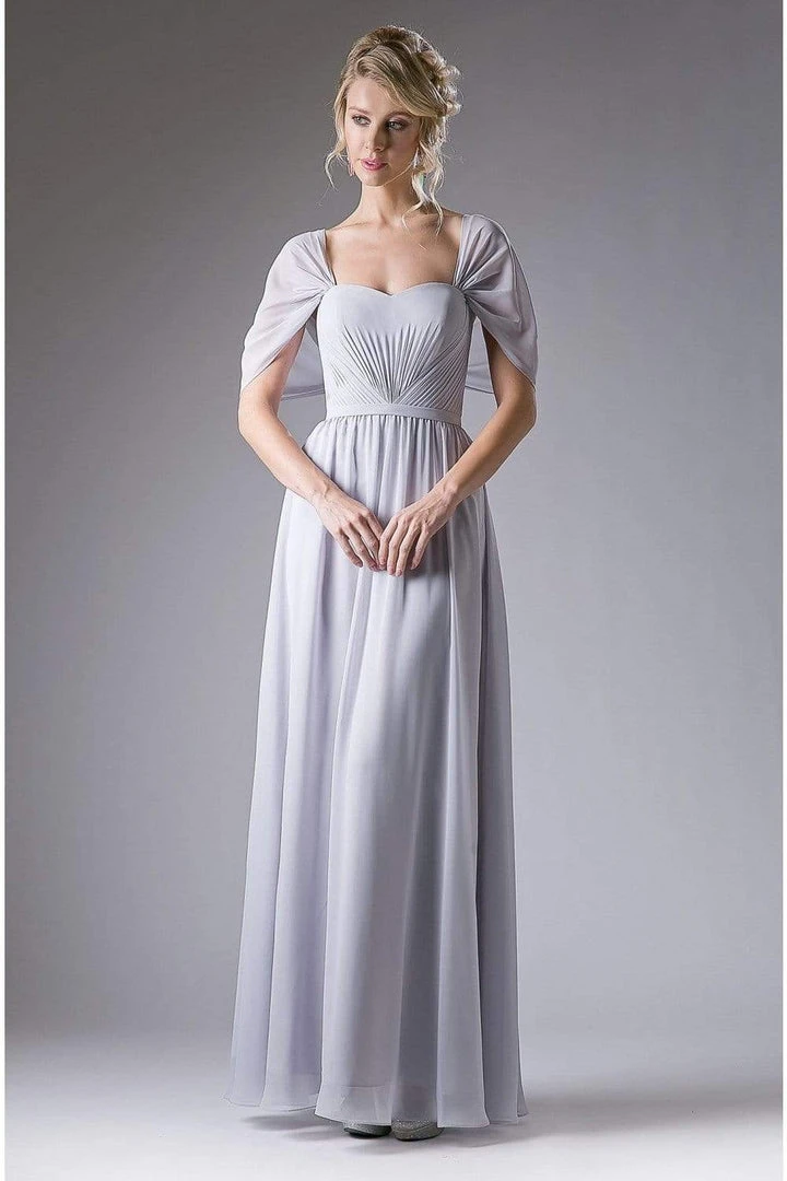 Get a timeless and trendy look in a new dress from Cinderella Divine CH532. Features a semi-sweetheart neckline with a cape detail. The back ruched bodice is wrapped in a thin belt presents a full length A-line skirt. This stunning dress by Cinderella Divine brings together all the essentials for a great look at prom or party!