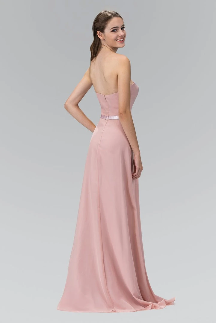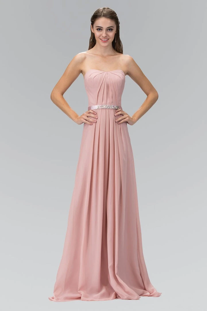 Be the lady of the night in this dress by Elizabeth K GL1078. Flashes in a strapless sweetheart neckline with pleated bodice and jewel-accented waistband. The skirt flows in an A-line silhouette and completes the look in a mini train. This Elizabeth K dress is perfect for prom, pageant, or a black tie event. Model is wearing Dusty Rose color.